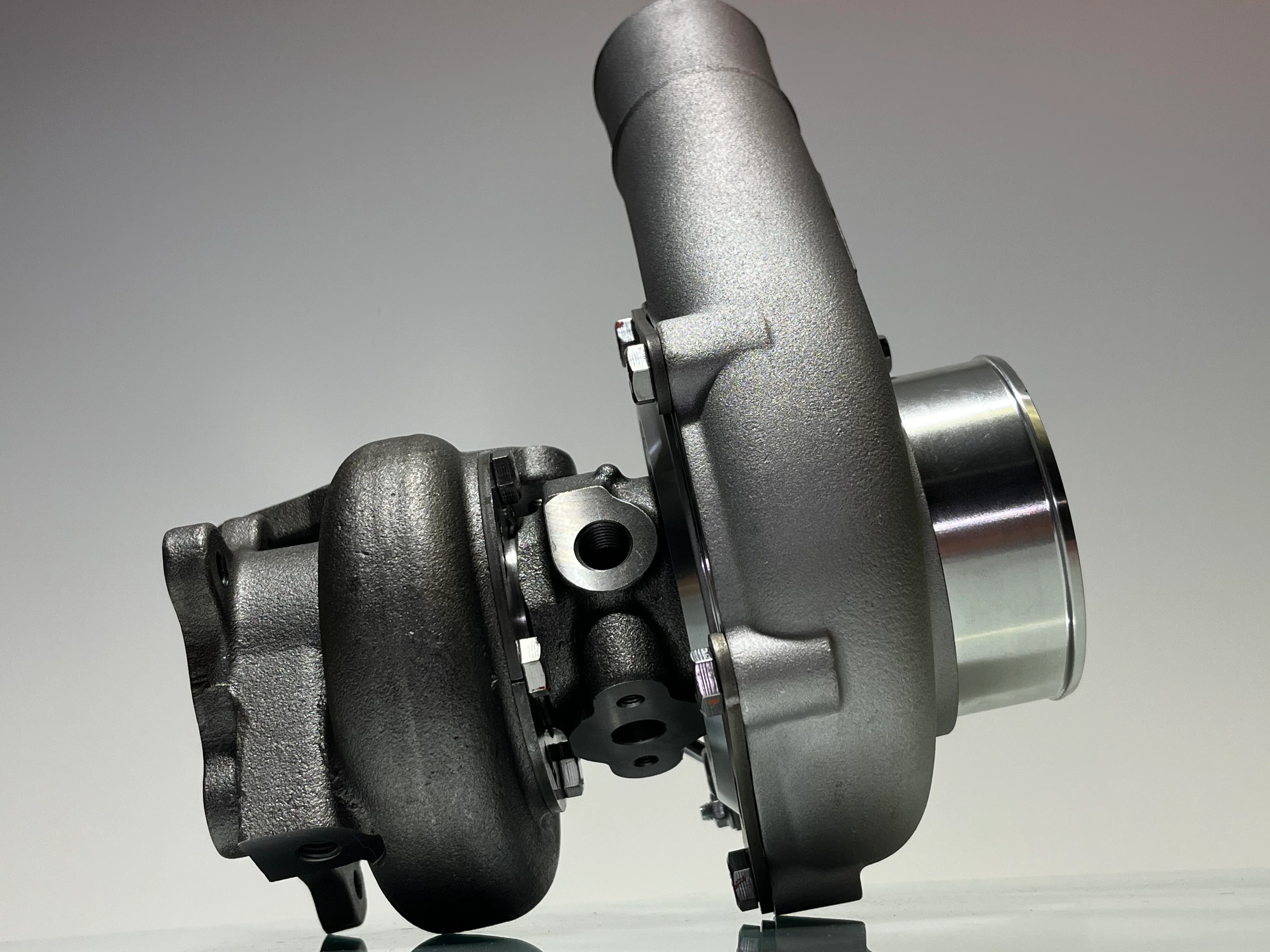 Our new S5 is a ceramic dual ball bearing G30-770 center section and is rated for 770 BHP. The exhaust housing is .82 a/r and has a mega sized 32mm internal wastegate port! The compressor housing is our .70 a/r T04B casting with a 3.5" inlet with antisurge port (T51R mod) along with an extended 2.25" outlet. Our internal wastegate actuator also got a bump in spring pressure so customers can really pump out big boost. Base boost is preset at 18 psi but can easily be preloaded up to 22 psi for the ones that want to reach maximum potential from this turbocharger.
